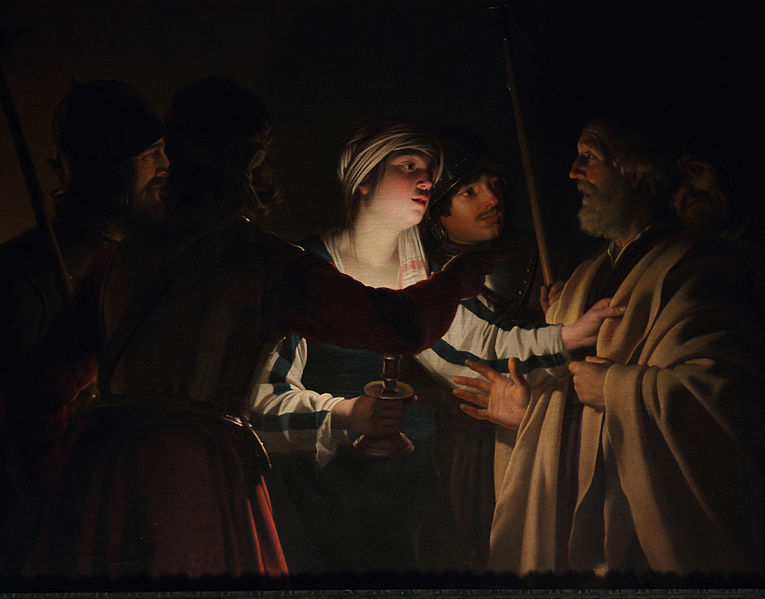 イエス様は、大祭司カヤパの庭で出来る限りの侮辱にさらされました。嘲笑う人々の中で、唾を掛けられ、拳や平手で打たれたのです。弟子達は皆逃げてしまいました。しかしペテロはひそかにイエス様の後を追い、大祭司カヤパの庭に紛れ込んでいました。さすがにイエス様から一番弟子として扱われたペテロは、イエス様の後を追ったのです。イエス様の御受難と十字架の周りには、人間の醜さや弱さが渦巻いています。