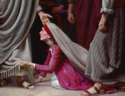 ★マルコ5章には、12年間婦人病を患った女性が出てきます。ユダヤの掟では、このような病気の女性は汚れた罪人として人前に出ることも許されませんでした。そのうえ長い間の病気治療のために財産を使い果たし、経済的にも厳しい状態にありました。ですから彼女は、肉体的な苦しみのみならず、精神的にも信仰的にも経済的にもどん底の状態にあったのです。そのような時にイエス様が来られたことを聞き、人前に出ることも触れることもいけないという掟を破り、命がけで群衆の中に紛れ込みイエス様の御衣に触れたのです。この声も出せない必死の求めをイエス様は、「自分のうちから力が外に出て行った」と感じ、私に触ったのは誰かと聞かれました。彼女は自らが犯してしまった行為を罰せられるかと思い進み出ましたが、イエス様は「娘よ。あなたの信仰があなたを直したのです。安心して帰りなさい。病気にかからず健やかでいなさい。」と温かい声をかけられ、今までの苦しみを全てぬぐい去って下さったのです。イエス様の言葉で、信仰的にも罪人ではないこと、精神的にも安心して良いこと、そして肉体的にも病気が癒され、これからははばかることなく人前に出て良いことを知ったのです。
