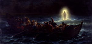 ★イエス様は多くの人々の病気を癒されたり、五つのパンと二匹の魚で五千人ほどの人たちに分け与えられる奇跡をなさいました。多くの人々はイエス様のみわざを見て喜び熱狂しましたが、イエス様は弟子たちが群集の熱狂や興奮に巻き込まれてしまわないよう船に乗り込ませ、群集から離れるようにされました。弟子たちが船を漕いでいると逆風と大波に翻弄され、何時間も湖の上で格闘することとなります。弟子たちが大変な思いをしながら船を漕いでいると、イエス様が弟子たちの所へ来られましたが、弟子たちはイエス様が来られてもイエス様だと分からず、かえっておびえてしまいました。まさかイエス様が湖の上まで来てくださるとは思わなかったのでしょう。それと同時に心の中は不安と恐れでいっぱいだったため、一番大切なことを見ることができなかったのではないでしょうか。私たちも困難や悩みだけに目を向けていると大切なことを見失い、最も近くに来て下さるイエス様が分からないということにならないでしょうか。