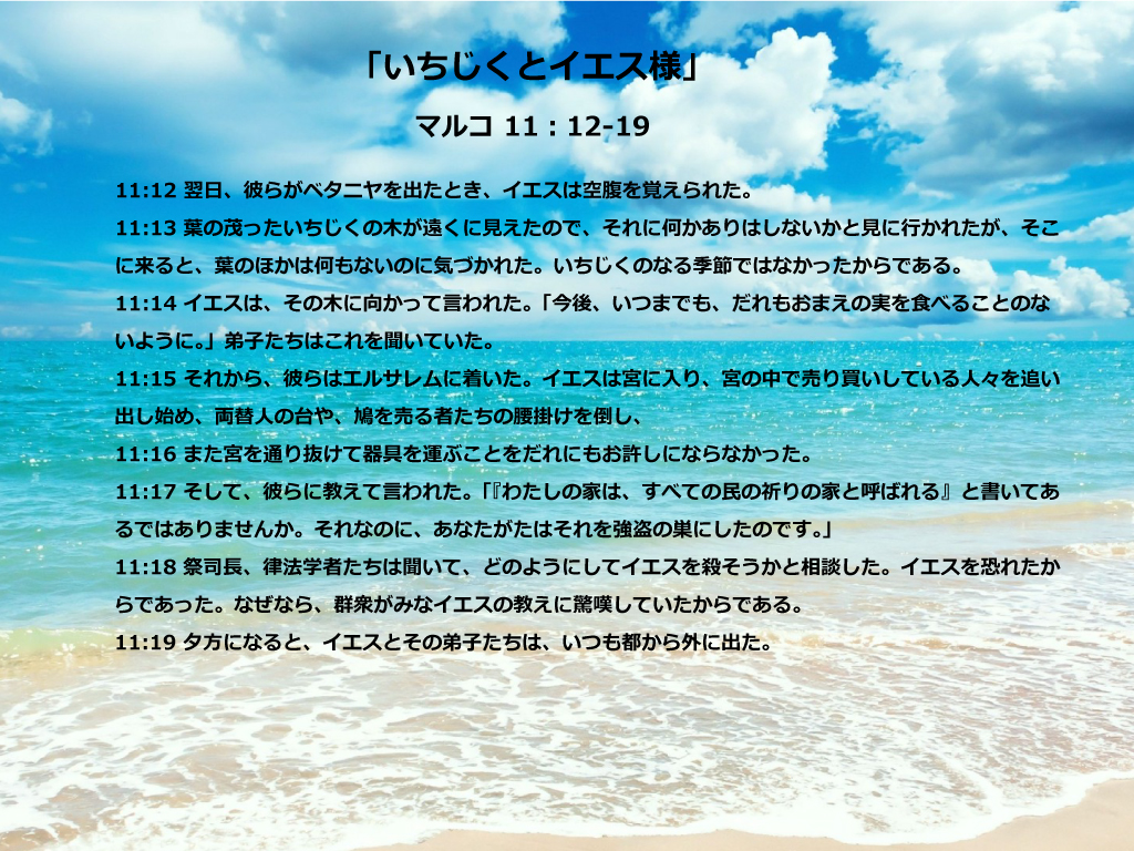 4月7日礼拝メッセージ「いちじくとイエス様」